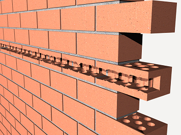 Ouverture de saignées dans maçonnerie de brique perforée, avec moyens manuels et la charge manuelle des décombres dans le camion ou la benne. |
