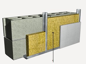 Isolation thermique entre les montants de l'ossature porteuse d'une contrecloison de plaques, constituée de panneau semi-rigide en laine minérale, épaisseur 30 mm, selon NF EN 13162, mis en place entre les montants de l'ossature porteuse. | ||