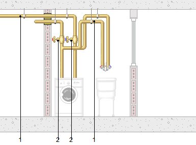 Installation intérieure de plomberie pour buanderie pour raccorder: prise et robinet de passage pour lave-linge, réalisée avec un tube de polyéthylène réticulé (PE-X), pour le réseau d'eau froide et chaud qui connecte la déviation particulière ou une de ses ramifications avec chacun des appareils sanitaires, avec les diamètres nécessaires pour chaque point de service. Comprend vanne de passage à quart humide pour l'arrêt d'approvisionnement en eau, de polyéthylène réticulé (PE-X), le matériel auxiliaire pour le montage et la fixation à l'ouvrage, déviation particulière, accessoires de déviations.