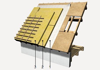 Toiture inclinée avec une pente moyenne de 70%. FORME DE PENTES: combles aménagés constitués d'ossature structurale en bois; PARE-VAPEUR: film en polypropylène avec un voile au verso, de 340 µm d'épaisseur; ISOLATION THERMIQUE: panneau rigide en laine de verre, de 60 mm d'épaisseur, selon NF EN 13162, résistance thermique 1,71 m²K/W, conductivité thermique 0,035 W/(mK), placé par l'extérieur de la toiture, sur platelage en bois; COUVERTURE: pièces rectangulaires d'ardoise pour toiture, 40x22 cm, posées horizontalement en joints alternés (couverture à pureau entier), et fixées sur liteaux en bois de pin de 40x27 mm. Comprend, la résolution des points singuliers et les pièces spéciales de la couverture. | ||
