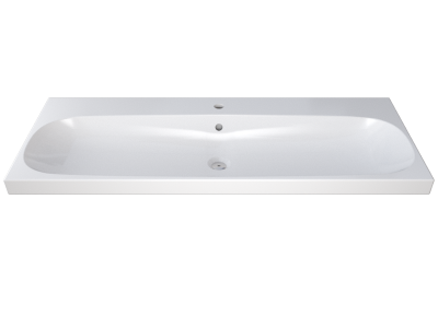 Lavabo mural, en argile réfractaire, finition thermo-émaillée, couleur blanche, de 1200x482x180 mm, avec un orifice pour la robinetterie et trop-plein, avec vanne d'écoulement en laiton chromé, et jeu de fixation à 2 pièces, et évacuation avec siphon bouteille en ABS, finition brillante imitation chrome. Comprend le silicone pour le scellement des joints.