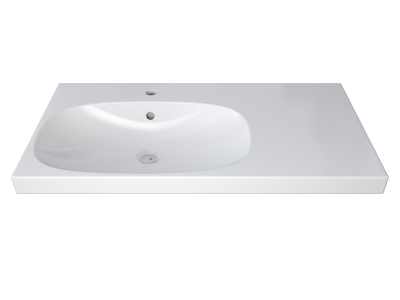 Lavabo asymétrique mural avec surface d'appui à droite, en argile réfractaire, finition thermo-émaillée, couleur blanche, de 900x482x168 mm, avec un orifice pour la robinetterie à gauche et trop-plein, avec vanne d'écoulement en laiton chromé, et éléments de fixation, et évacuation avec siphon bouteille en ABS, finition brillante imitation chrome. Comprend le silicone pour le scellement des joints.