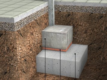 | Bourrage avec des briques pleines en terre cuite et du mortier expansif, en reprise en sous-oeuvre de fondation | ||